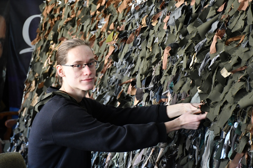 From the first days of hostilities, volunteers have been weaving camouflage nets at T. Shevchenko Ternopil Academic Regional Ukrainian Drama Theater. Actresses with their families and students of Ternopil National Medical University are engaged in this in the art and decorative shop.