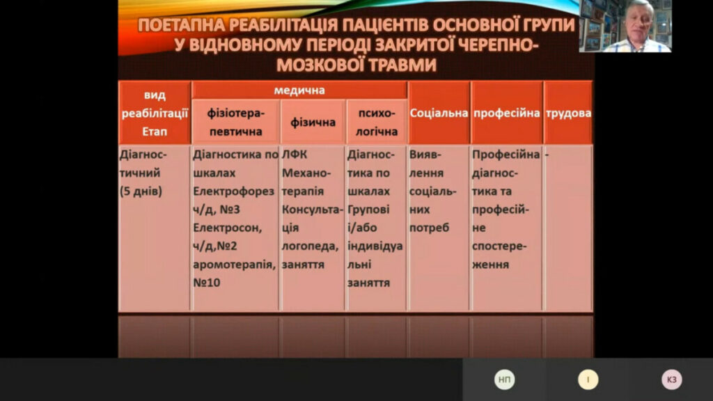 The report “Examination of the functional capabilities of persons affected by craniocerebral trauma to establish the effectiveness of rehabilitation measures in conditions of uncertainty” was presented by the Head of the Department of Rehabilitation and Alternative Medicine of the Faculty of Postgraduate Education of Danylo Halytsky Lviv National Medical University, Professor Lukyan Andriyuk.