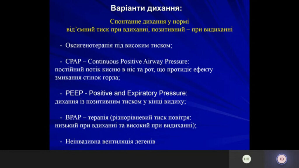 During the workshop, the Head of TNMU Department of Anaesthesiology and Intensive-Care Medicine, Professor Volodymyr Hnativ, spoke about the general principles of positive expiratory pressure breathing.
