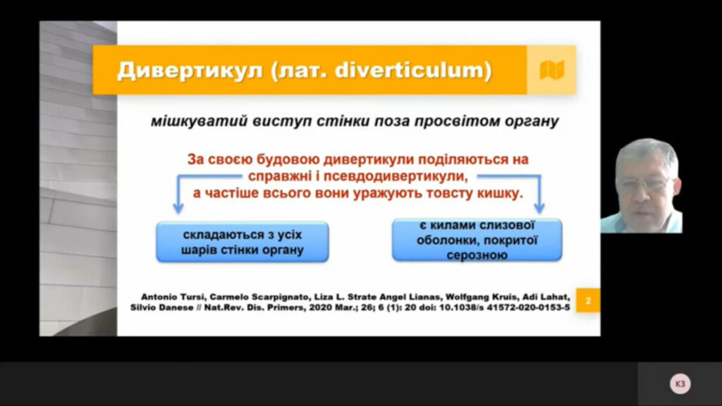 Vasyl Mishchuk, Professor, Head of the Department of General Practice (Family Medicine), Physical Rehabilitation and Sports Medicine of Ivano-Frankivsk National Medical University presented the report “Diverticular disease and diverticulosis in the practice of a family doctor”.