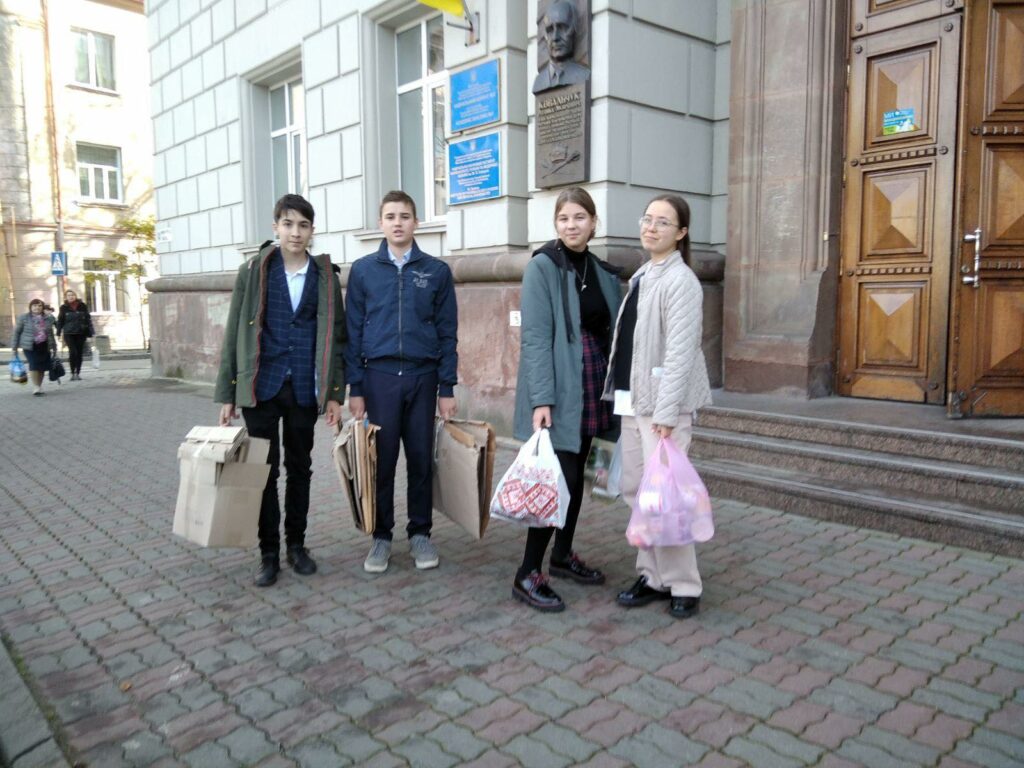 On October 28, 2022, students of I. Franko Ternopil Ukrainian Gymnasium brought a large number of cans and cardboard. We sincerely thank the young people of Ternopil and teacher Oleksandra Hrabovska for a civic-minded position.