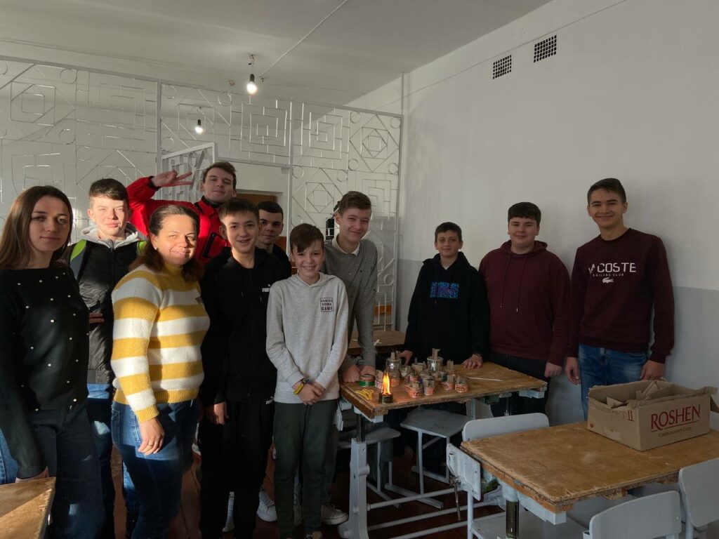 On October 28, 2022, students of I. Horbachevsky Ternopil National Medical University, Andrii Svirzhevskyi (MM-220), Tamara Nych (MM-220), Ruslana Khrustavka (MM-314), Nazarii Krulyk (MM-373) held a workshop on the production of trench candles for the 8th-grade students of Volodymyr Levytskyi Ternopil Primary School № 16.