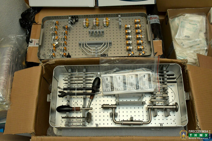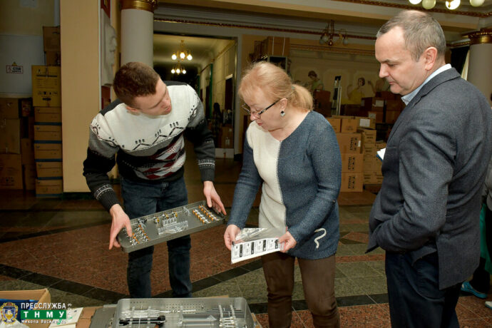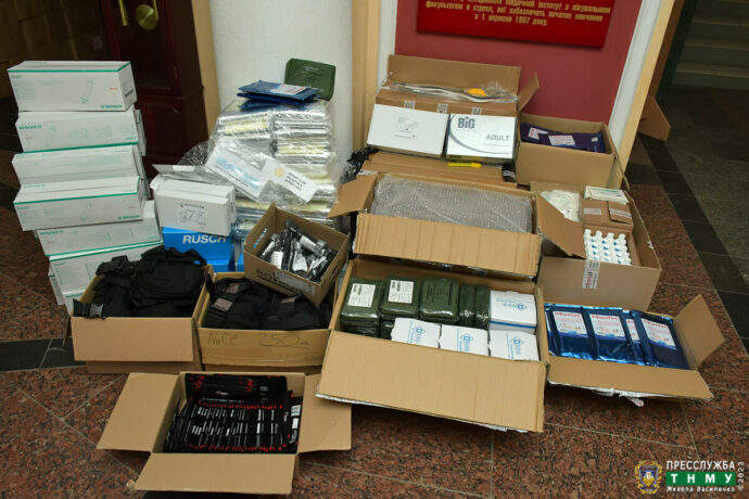On March 9, 2023, the Volunteer Centre of I. Horbachevsky Ternopil National Medical University received a humanitarian consignment from Rotary Klub Wolsztyn (Republic of Poland) and from Rotary 5650 District Governor (USA). This time, 150 kg of medical supplies were handed over, including individual NATO-standard military first-aid kits, certified tourniquets, and sets of tools for external fixation.