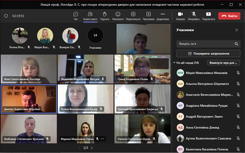 On March 16, 2023, the Head of the Department of Pharmaceutical Chemistry, Professor Liliya Logoyda, held an interdepartmental scientific and applied seminar on the topic “Application of scientometric databases for writing a scientific paper in chemistry: theoretical aspects and personal experience” on the MS Teams platform. This event was attended not only by the staff of the departments of the Faculty of Pharmacy, but also by the Master’s and PhD students.