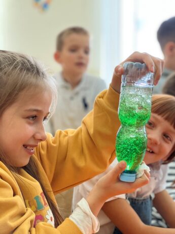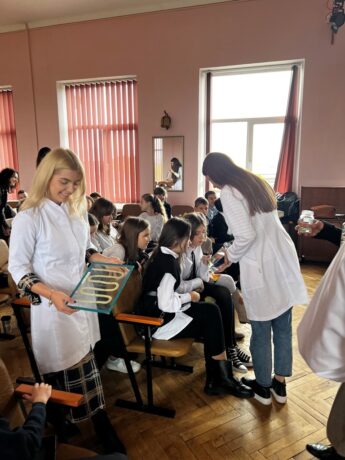 During the communication with the school community, medical students skilfully demonstrated experiments on the physical and chemical properties of air, water, earth and fire. Junior students watched with great pleasure the demonstration of such experiments as “Sea in a glass”, “Get out of the water dry”, “Pepper water”, “Lava lamp”.