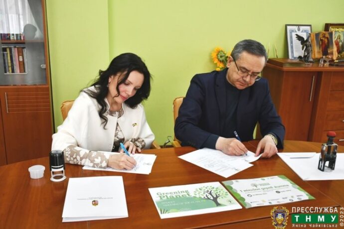 On the eve of one of the greatest holidays – the Resurrection of Christ – Ternopil National Medical University was visited by the Honorary Consul of Hungary in Ternopil Tetiana Chubak. At the same time, the consulate is a regional representative of the charitable organization “Greening of Ukraine Charitable Foundation”. On April 13, 2023, together with the Rector of TNMU, Professor Mykhaylo Korda, she signed the Memorandum on cooperation in the implementation of the global eco-initiative “Greening of the Planet”.