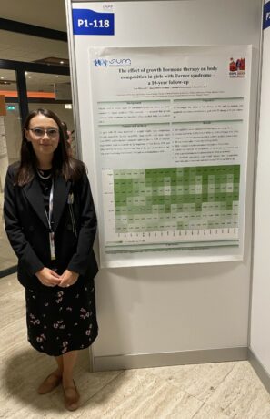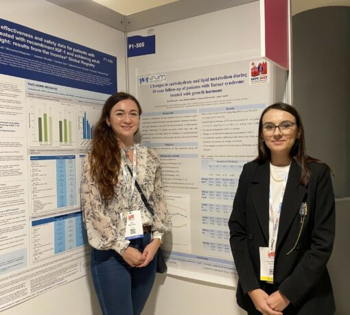 In cooperation with Ewa Błaszczyk, PhD from the Department of Paediatrics and Paediatric Endocrinology of the Silesian Medical University in Katowice (Śląski Uniwersytet Medyczny w Katowicach) under the guidance and mentoring of expert Prof. Aneta Gawlik, the participant presented the results of fruitful work on Turner syndrome in the form of two poster reports “Changes in carbohydrate and lipid metabolism during 10-year follow-up of patients with Turner syndrome treated with growth hormone”, the results of which are also published in Frontiers in Endocrinology and “The effect of growth hormone therapy on body composition in girls with Turner syndrome – a 10-year follow-up”. This topic aroused interest and discussion among listeners.