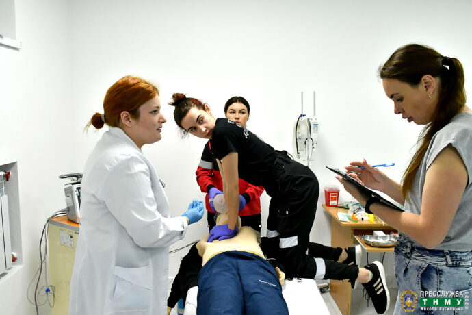 In academic year 2023-2024, Ternopil National Medical University made changes to the academic program “Practical Training in Medical Simulation” for the 6th-year students of the Faculty of Medicine, in particular to its assessment part. Instead of testing, students were asked to demonstrate acquired practical skills and work in scenarios while providing medical care to an emergency patient. 4 locations were deployed on the basis of the Simulation Training Centre: