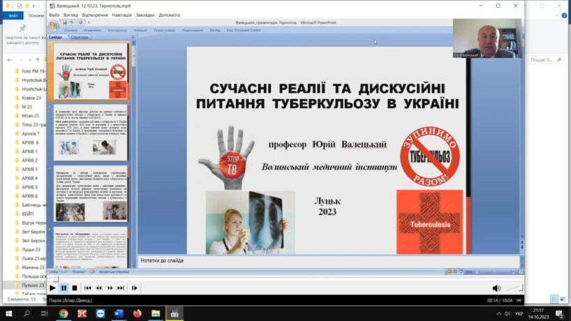 The report of Professor Yurii Valetskyi (Volyn Medical Institute) was devoted to the modern problems of the fight against tuberculosis in Ukraine.