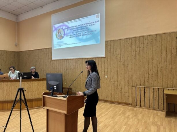 Natalia Yarema, Associate Professor of the Department of Children’s Diseases and Paediatric Surgery of I. Horbachevsky Ternopil National Medical University, gave a report on the topic “Diagnosis of diseases accompanied by T- and B-lymphopenia using neonatal screening (clinical case)”. The speaker told the audience about the diagnosed case of Nijmegen syndrome in a child, she gave the clinical and laboratory signs of this disease.