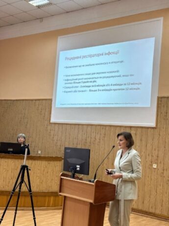 The report of Professor Oksana Boyarchuk, Head of the Department of Children’s Diseases and Paediatric Surgery of I. Horbachevsky Ternopil National Medical University, was relevant and interactive. She presented a report on the topic “A child with recurrent respiratory infections: how to choose the right diagnostic and treatment tactics” (workshop). The scholar spoke about the most frequent recurrent respiratory infections in children, examples of secondary causes of recurrent infections, cited her own clinical cases of the course of diseases in children with immunodeficiency conditions, and provided indications for replacement therapy with immunoglobulins in children.