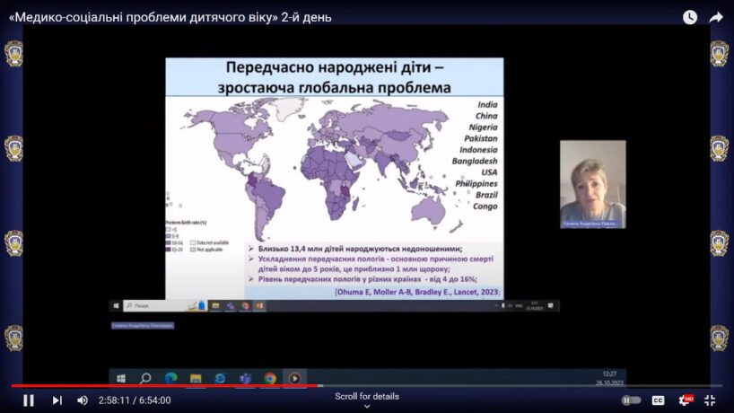 Halyna Pavlyshyn, Head of the Department of Paediatrics No. 2 of I. Horbachevsky Ternopil National Medical University, presented the report “Screening assessment of the developmental status of premature babies depending on the type of parenting”.