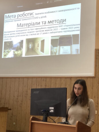 Vita Perestiuk, a post-graduate student of the Department of Children’s Diseases and Paediatric Surgery of I. Horbachevsky Ternopil National Medical University, gave a speech on the topic “Prevalence and clinical manifestations of prolonged COVID-19 in children”.