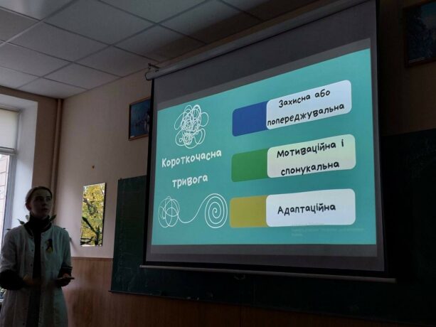 For a week, the University was implementing the “Mental Health” educational project. This series of events was organised by the third-year students of the Faculty of Medicine Ilona Kohut, Yuliana Saiuk, Maksym Kaleniuk. For several days, future doctors gave lectures to schoolchildren of different age groups. Schoolchildren were able to learn useful information on topics such as “Mental Health in Wartime”, “What Do I Feel?” and “Hello, Future Student!”.