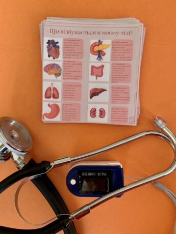 Quizzes, brainstorming and other interactive logical games were conducted with schoolchildren for better understanding of the material. Pupils could also get acquainted with such devices as a stethoscope and a pulse oximeter.