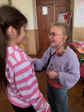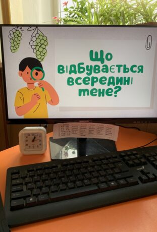On November 14, 2023, TNMU student Yana Mishko organized a lecture-game on the topic “What happens in our body?” for students of the 3rd and 4th grades of Ternopil Secondary School No. 4. The purpose of the event was to explain to children as simply as possible what the human body is, what it consists of, and what functions this or that organ performs.
