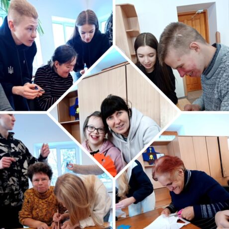 Teacher Nataliia Hantimurova together with the tutor group (MM-117) and wards of L’Arche-Ternopil NGO.