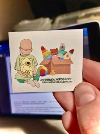 As part of the “Box of Courage” project, they developed and distributed stickers for a symbolic price of 10 hryvnias. Your contribution for each “Stickers of Courage” helped raise funds for the purchase of toys for children receiving treatment in the haematology department.
