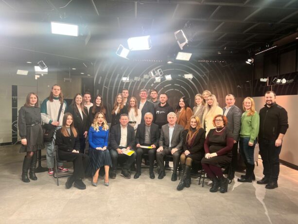On December 13, 2023, the non-governmental organization “Smart Media” organized a public discussion in Ternopil on the TV-4 channel on the topic “Rebuilding Ukraine: can the voice of the youth be heard?”. The delegation of Ternopil National Medical University took part in this event, consisting of the Vice-Rector for Science and Education, Professor Arkadii Shulhai, Head of the Department of General Chemistry, Associate Professor Hryhoriy Zahrychuk, Head of the Academic Office, Associate Professor Andrii Mashtalir, 5th-year student, Head of the Student Parliament Maksym Levytskyi, 4th-year student Viktoria Miroshnyk and 3rd-year student Sofia Berehuliak.