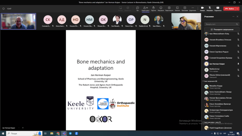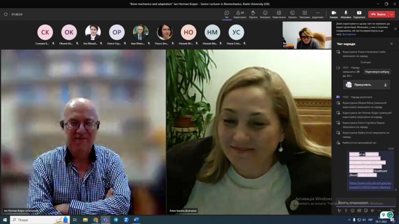 On November 28, 2023, Jan Herman Kuiper (PhD, Senior Lecturer in Biomechanics, School of Pharmacy and Bioengineering, Keele University) gave an online lecture for interested representatives of TNMU about the biomechanical properties of bones “Bone adaptation and biomechanics”.