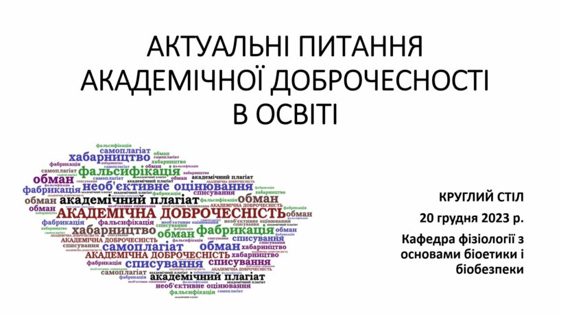 The Department of Physiology, Bioethics and Biosafety hosted a round table discussion of the problematic field of academic integrity. The event was moderated by the Head of the Department, Professor Stepan Vadzyuk and Associate Professor of the Department Tetyana Tolokova and was attended by the third-year students of the Faculty of Medicine.