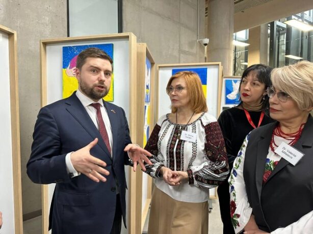 Moreover, during the event, an exhibition of children’s paintings “War through the eyes of children. Dreams and fears” in memory of Mykola Mialkovskyi was held. About 30 works created under the supervision of Tetiana Mialkovska, within the framework of recreation and rehabilitation programs for children from the front, near-front and de-occupied territories of Ukraine, were at the University of Latvia for 7 days. These are children who lost their parents, relatives and childhood. Mykola Mialkovskyi was only 28, he worked in the Lublin City Hall, and since the beginning of the full-scale invasion, he came and stood up for the defence of Ukraine. This exhibition is in memory of him and everyone who lost their lives for the sake of a happy future for our children.