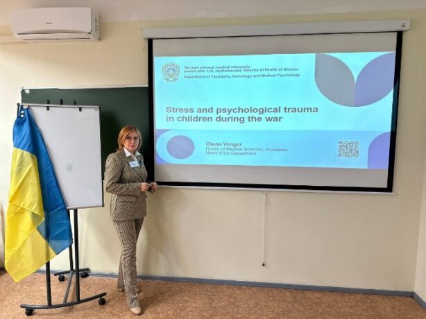 – “Problems of mental health of military personnel” – Olena Wenger – Psychiatrist, DSc, Professor, Head of the Department of Psychiatry, Narcology and Medical Psychology of TNMU and Volodymyr Koptiukh (online) – Head of the battalion’s medical service, senior lieutenant of the medical service.