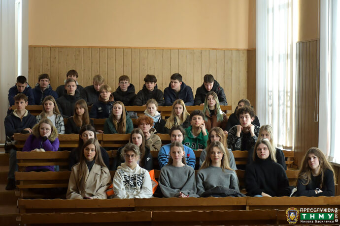 On February 27, 2024, 11th-grade students of Ternopil Academic Lyceum “Ivan Franko Ukrainian Gymnasium” had a chance to attend classes together with the students of TNMU, thus learning about the specialties. Lyceum students were accompanied by the director of the Lyceum Mykola Fedoruts, deputy directors for educational work – Larysa Tomashevska and Ludmyla Bilchuk, as well as class teachers Aliona Ivashchuk, Halyna Sopivnyk, Oksana Mykhailova, Halyna Kozbur.