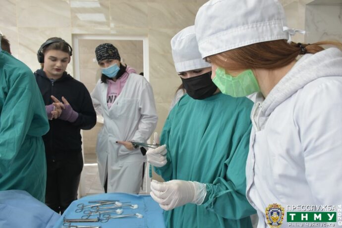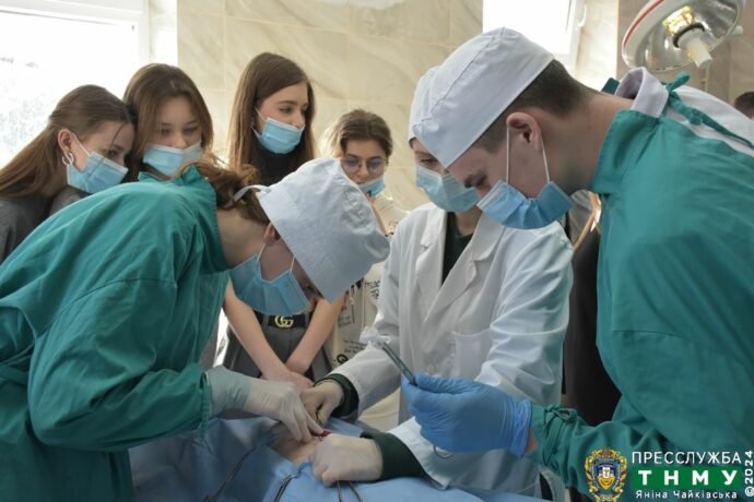 During a practical session on surgery, the teachers of the Department of Operative Surgery and Clinical Anatomy, led by its Head Professor Mykhailo Hnatiuk, gave young people the opportunity to get to know the specifics of surgical interventions.