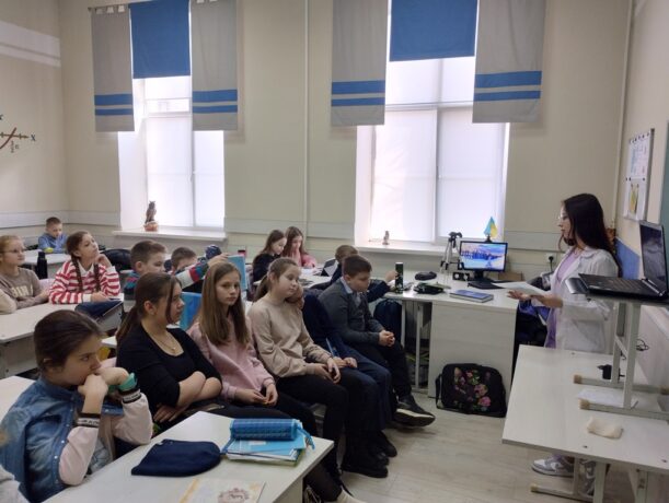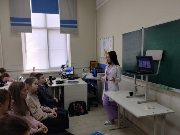 On March 8, 2024, students of TNMU Faculty of Medicine Olena Iskra (MM-416) and Diana Malyshevska (MM-416) gave lectures on topics “All about Electronic Cigarettes and Energy Drinks” for the 5th- and 11th-grade students and the lecture on topic “Adolescent in Health Care System” for the 5th-grade students of Ternopil Academic Lyceum “Ivan Franko Ukrainian Gymnasium”.