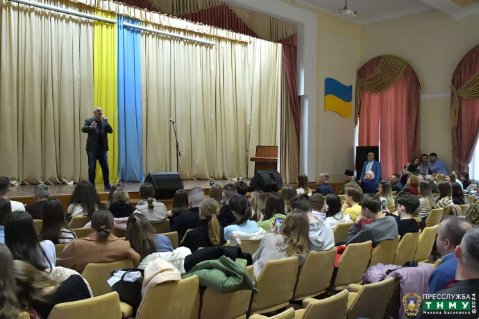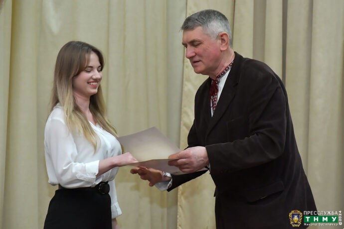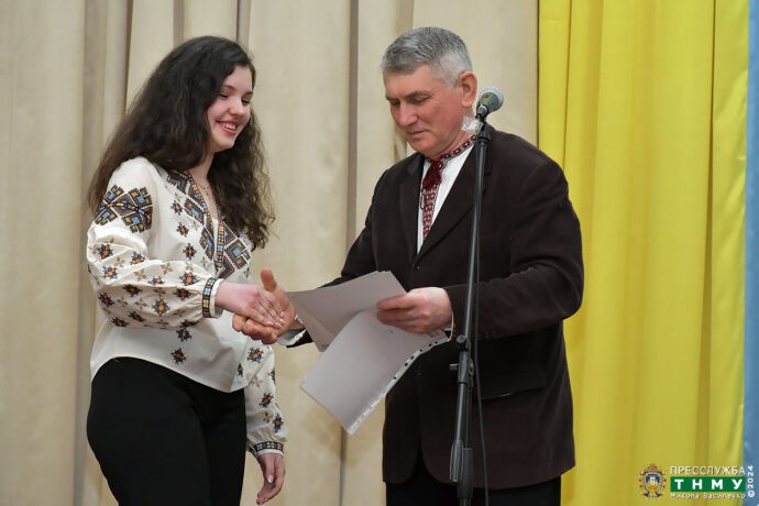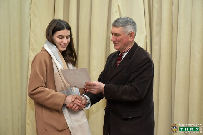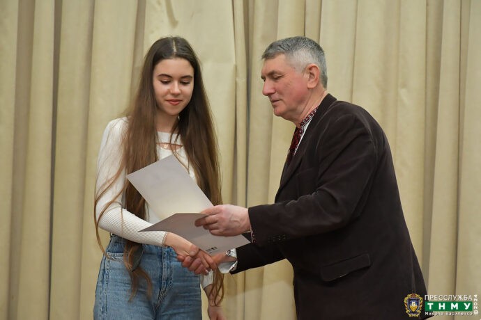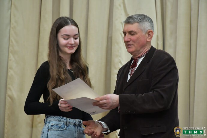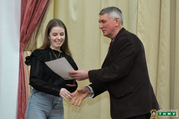 The voice of Honoured Artist of Ukraine Vasyl Khlystun and the artists who created the Ternopil Brahms ensemble in 1995 rang out on stage. Performers from the first team, as well as today’s members, showed a fascinating performance. Spectators had the opportunity to better familiarize themselves with the collective’s creativity and have an informative time. Active students, in their turn, were also not left without attention, receiving certificates from the Rector of the university Mykhaylo Korda for academic excellence and volunteer activities.