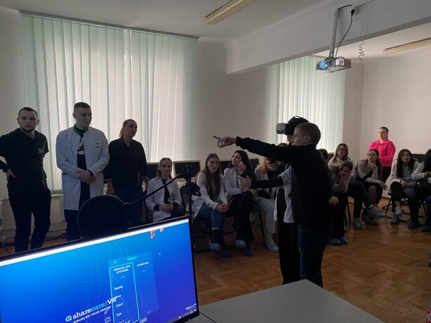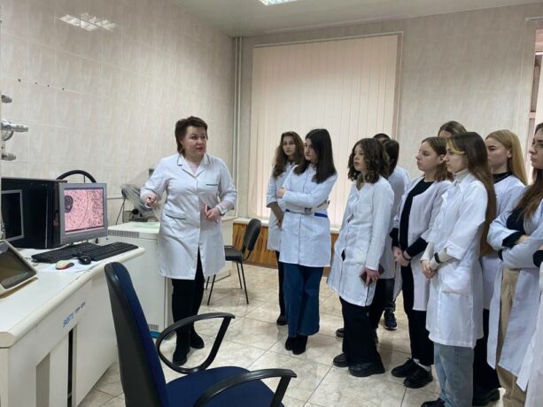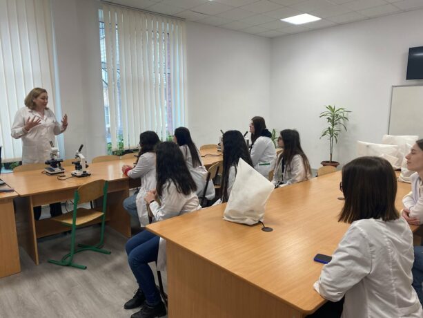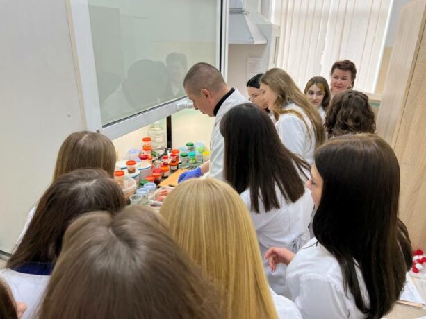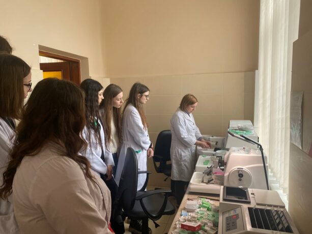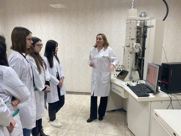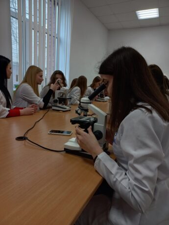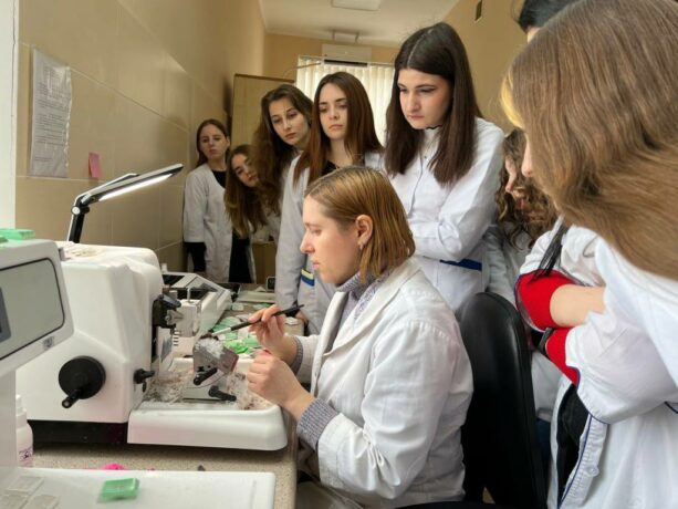 The Head of the Department of Histology and Embryology, Professor Zoia Nebesna, originally combined informative tours into the history of the creation of educational university laboratories, the dynamics of equipment and software with a demonstration of work under an electron microscope. College students were shown the laboratories and demonstrated the functionality of using the “Logos” histoprocessor. Senior laboratory assistant Oksana Kindzerovych told not only about the stages of preparation of materials for histological research, but also visualized its individual stages.