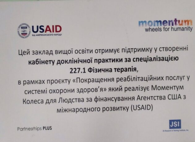 Тернопільський національний медичний університет імені І.Горбачевського є одним з представників п’яти партнерських вищих навчальних закладів України, які залучені до проєкту «Покращення реабілітаційних послуг у системі охорони здоров’я», який реалізує Momentum Wheels for Humanity та JSI Research & Training Institute Inc. за підтримки Агентства США з міжнародного розвитку (USAID).