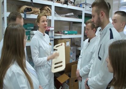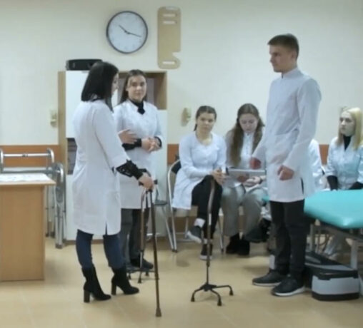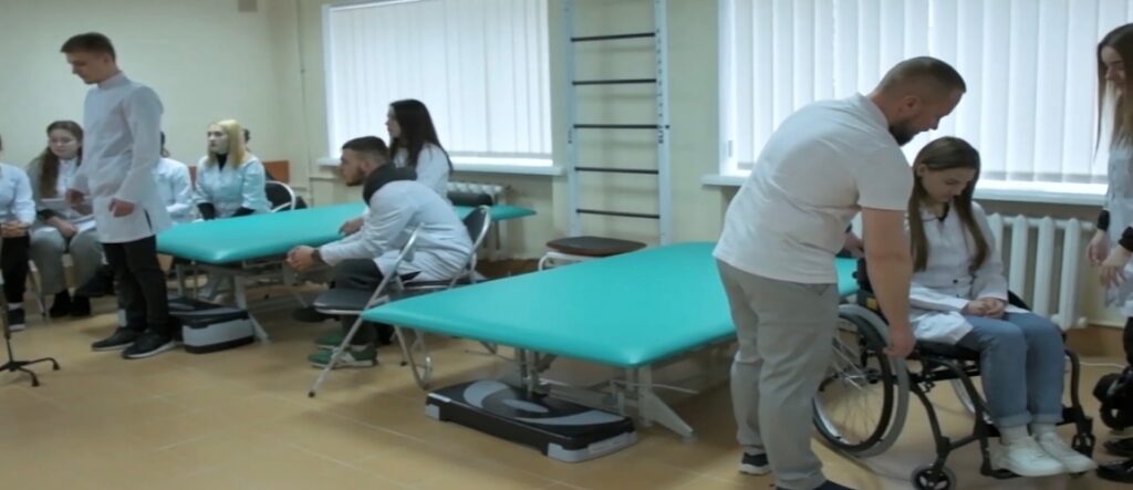 During practical classes in the preclinical practice office, future physical therapists master the professional skills of safe and effective provision of rehabilitation aids, in particular, practice their selection, adjustment and learn to use them on the example of a virtual patient.