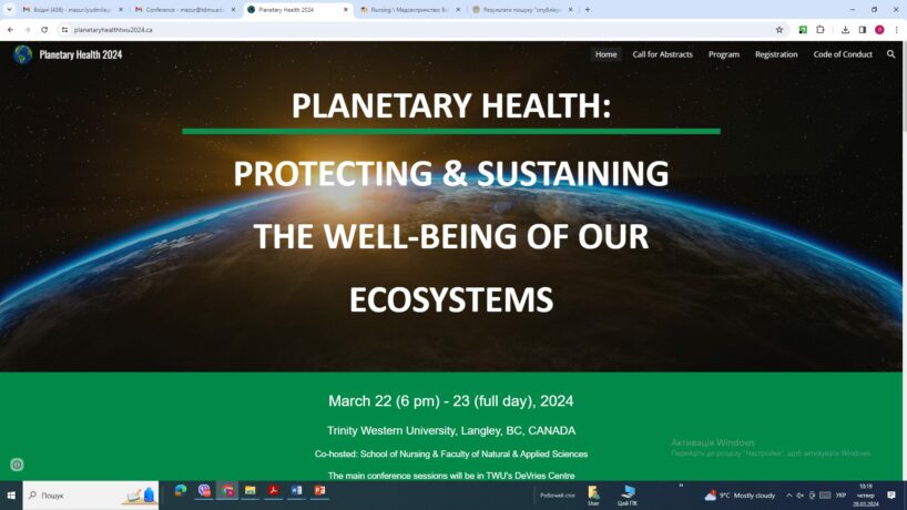The Director of the Academic and Research Institute of Nursing, Associate Professor Svitlana Danchak and her deputy, Associate Professor Liudmyla Mazur, together with the teachers of MacEwan University (Edmonton, Alberta, Canada) took part in the conference “Planetary Health: Protecting and Sustaining the Well-Being of Our Ecosystems”.