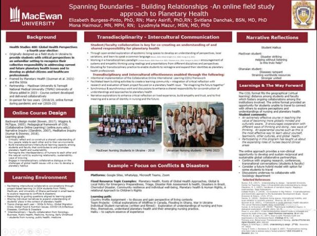 A team of scientists from MacEwan University and TNMU presented a report at the conference “Spanning Borders – Building Relationships – an Online Field Study Approach to Planetary Health”. The report highlighted one of the areas of cooperation between the universities – the holding of joint training courses “Global Health”, which were held on the basis of the Institute of Nursing of our university in 2018 and 2019, as well as in an online format in 2020-2023. Students and teachers of both partner universities took part in the training courses, and in 2023, employees and students of the University of Ghana joined the project.