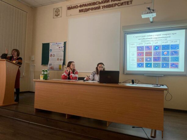 Olha Denefil, Head of the Department of Pathological Physiology of TNMU, delivered the official speech “Mechanisms of the development of adrenaline cardiomyopathy in rats subjected to hypodynamia and gonadectomy”.