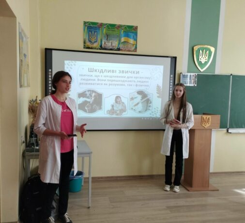 On April 8, 2024, students of I. Horbachevsky Ternopil National Medical University, Viktoria Hural (MM-115) and Maria Vivchar (MM-118) gave a lecture for the tenth-grade students of Ternopil Law Lyceum No. 2 on the topic “Say no to bad habits!”