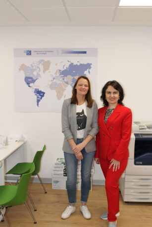 Oksana Bahrii-Zayats together with the curator of the academic mobility program, Isabel Barreiro.