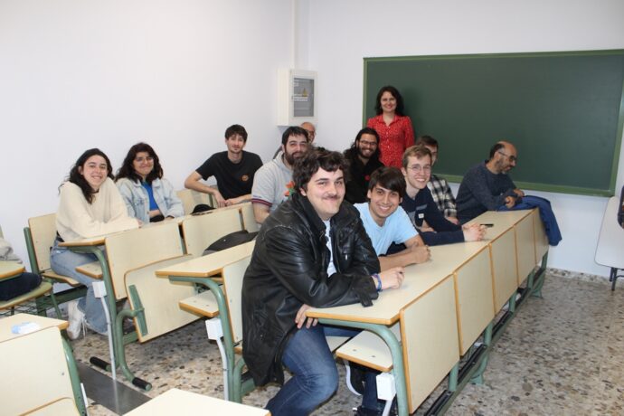 After the lecture in the classroom of the Faculty of Physics.