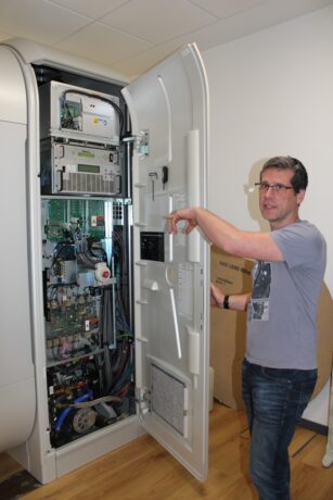 With the technical specialist of the laboratory of radiation physics, Marta Feriya Horata.