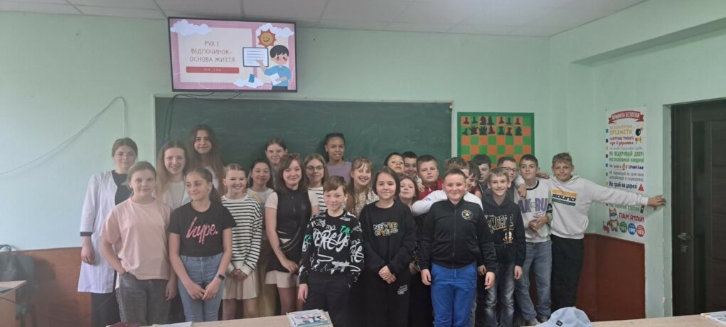 On May 2, 2024, first-year students of the Faculty of Medicine (MM-106) Yana Rohulska, Diana Yavna and Kateryna Hrelia visited B. Lepky Ternopil Secondary School No. 14 to give a lecture to the students of the 5th grade on the topic “Movement and rest as the basis of life”.