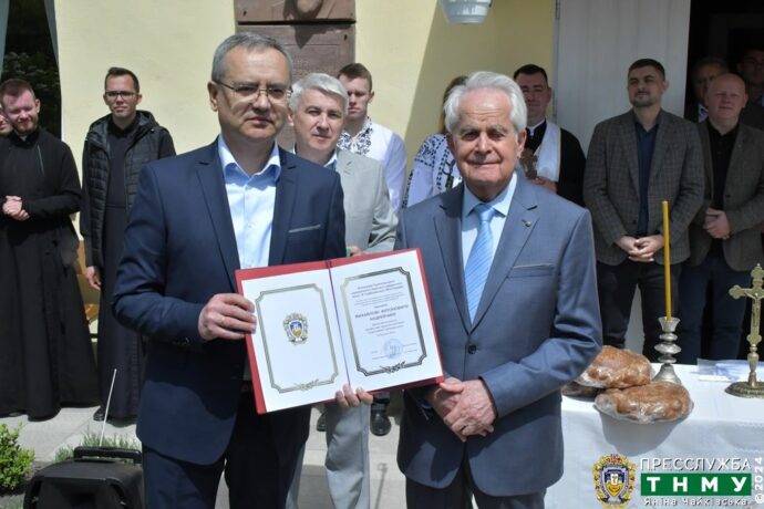 As Mykhaylo Korda noted, every year the Academic Board will choose one honoured professor at the university, who will receive this award and have an honorary title. Academician Mykhaylo Andreychyn became the first owner of such an award. During the celebrations, the Rector of TNMU presented Mykhaylo Andreychyn with the diploma of “Honoured University Professor” and the Ivan Horbachevsky Medal.