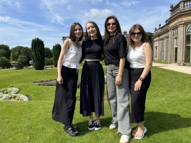 TNMU students Uliana Dyshko, Olha Opleta, Tetiana Orlyk, and Liliya Fedyshyn at Lyme Park.