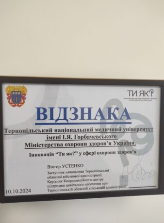 I.Horbachevsky Ternopil National Medical University received an award in the nomination “Innovation “How are you?” in health care.