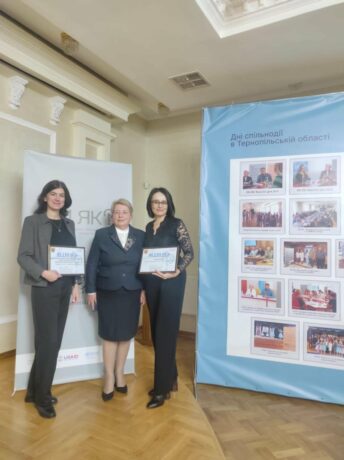Viktor Ustenko and the regional coordinator of the All-Ukrainian mental health program “How are you?” Lesya Kosovska, awarded the best specialists and organizations in health care, social protection, education, defense and veteran policy, law and order, culture, youth, and sports, who significantly contributed to implementing the program in Ternopil region.