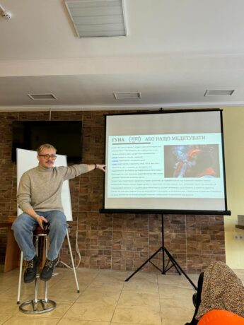 The first speaker was an internship doctor Andrii Chaika, who presented a historical overview of the origins and development of meditation and introduced the terminology used in Hindu philosophy.