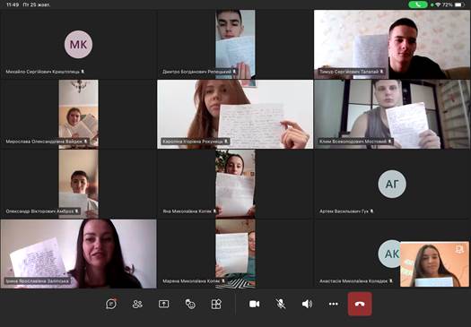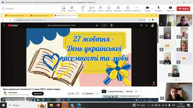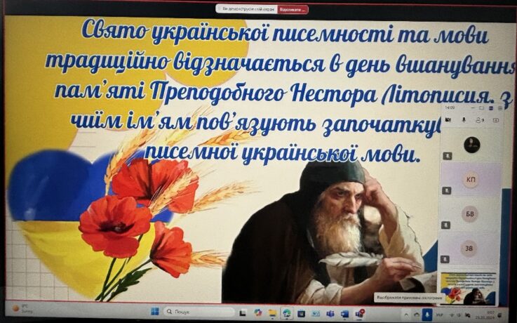Associate Professor Oksana Mysyk and students from group PBv-132 watched an educational video about the history of Ukrainian Language and Literature Day.
