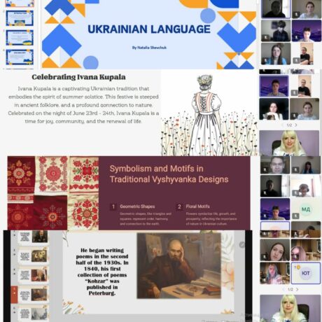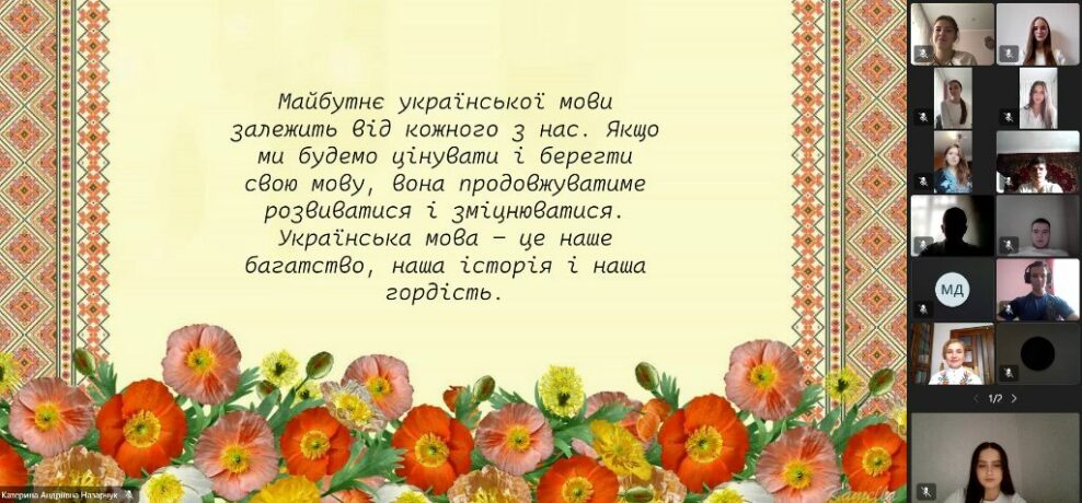 Students from group MM-207 and their teacher, Nataliia Hantimurova, prepared interesting quizzes and presentations in English about the pronunciation features of certain words in various regions of Ukraine. They also recalled famous Ukrainian figures in science and culture, writers, and poets who contributed to developing the Ukrainian language. The young participants also highlighted certain features of celebrating our country’s Day of Ukrainian Literature and Language.