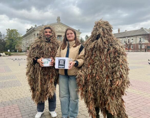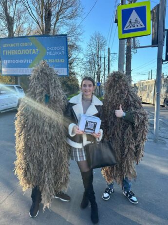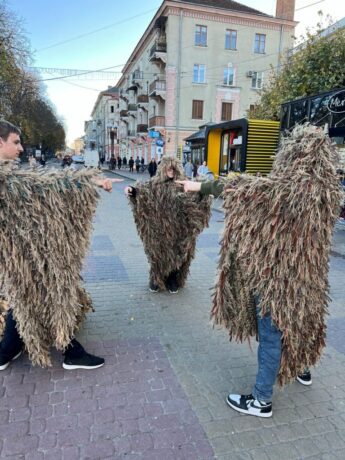 A new project, “Gather Funds for Spunbond, Save a Soldier’s Life,” was initiated by Andrii Svirzhevskyi to raise money to purchase materials for camouflage nets. In a creative fundraising effort, students dressed in ghillie suits walked around the city and raised 23,052 UAH.